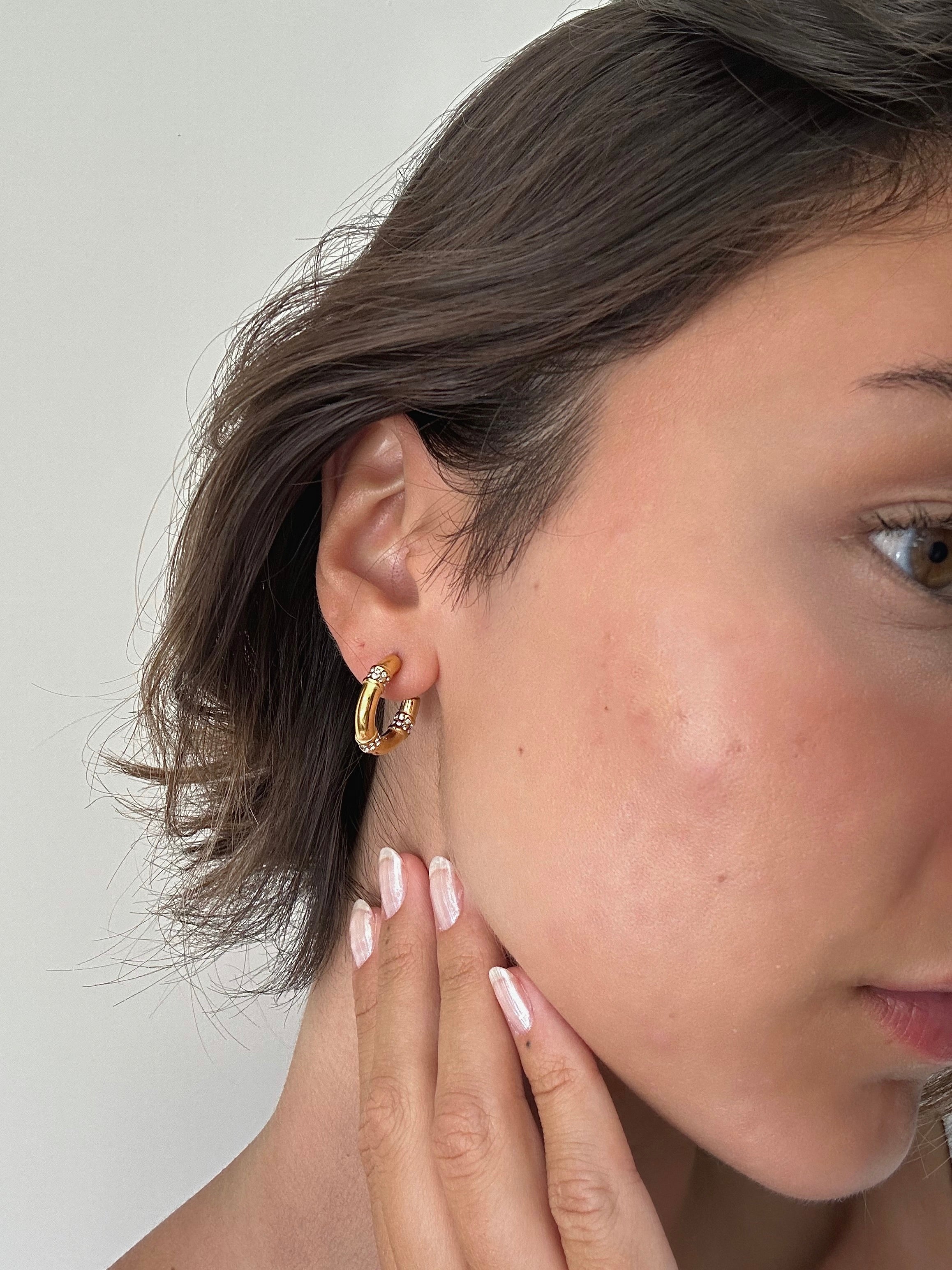 Upgrade your jewelry game with our chic and stylish chunky sparkly hoops and experience the perfect blend of fashion and function. These earrings are sure to become your go-to choice for adding some sparkle to your look and are the perfect addition to any jewelry collection.